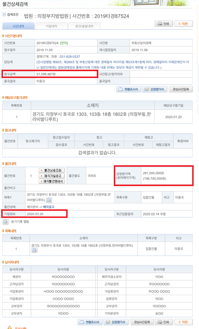 내가 입찰한 물건은 3/20일 의정부지방법원에서 진행한 아파트였다.