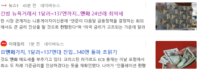 최근 들어 엔화 가치가 24년만에 최저수준에 이르렀다는 뉴스를 접했다.